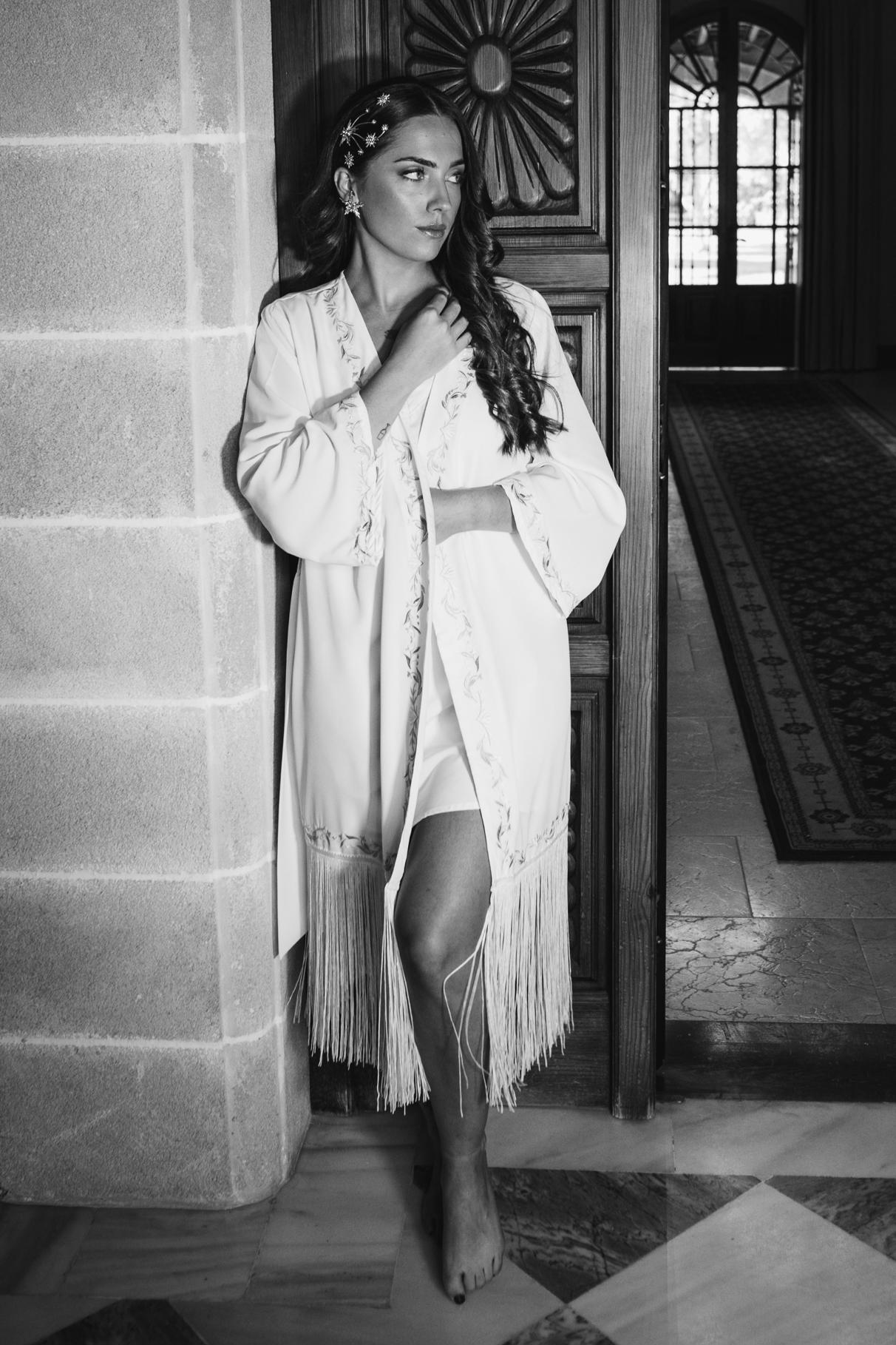 *La modelo lleva la Bata Flecos con el camisón Valentina.